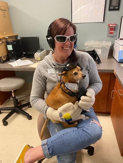 This past week our church remembered two nurses who stood out in history. One was Florence Nightingale and the other Clara Maass. Every year we remember them both on August 13. On August 16, my family celebrates the birthday of our daughter, Colleen, who is also a nurse and a big fan of Nurse Nightingale. She serves as a geriatric nurse and is pictured here participating in a sensitivity training session on Dementia along with her dog, the late Pooter Dishman.